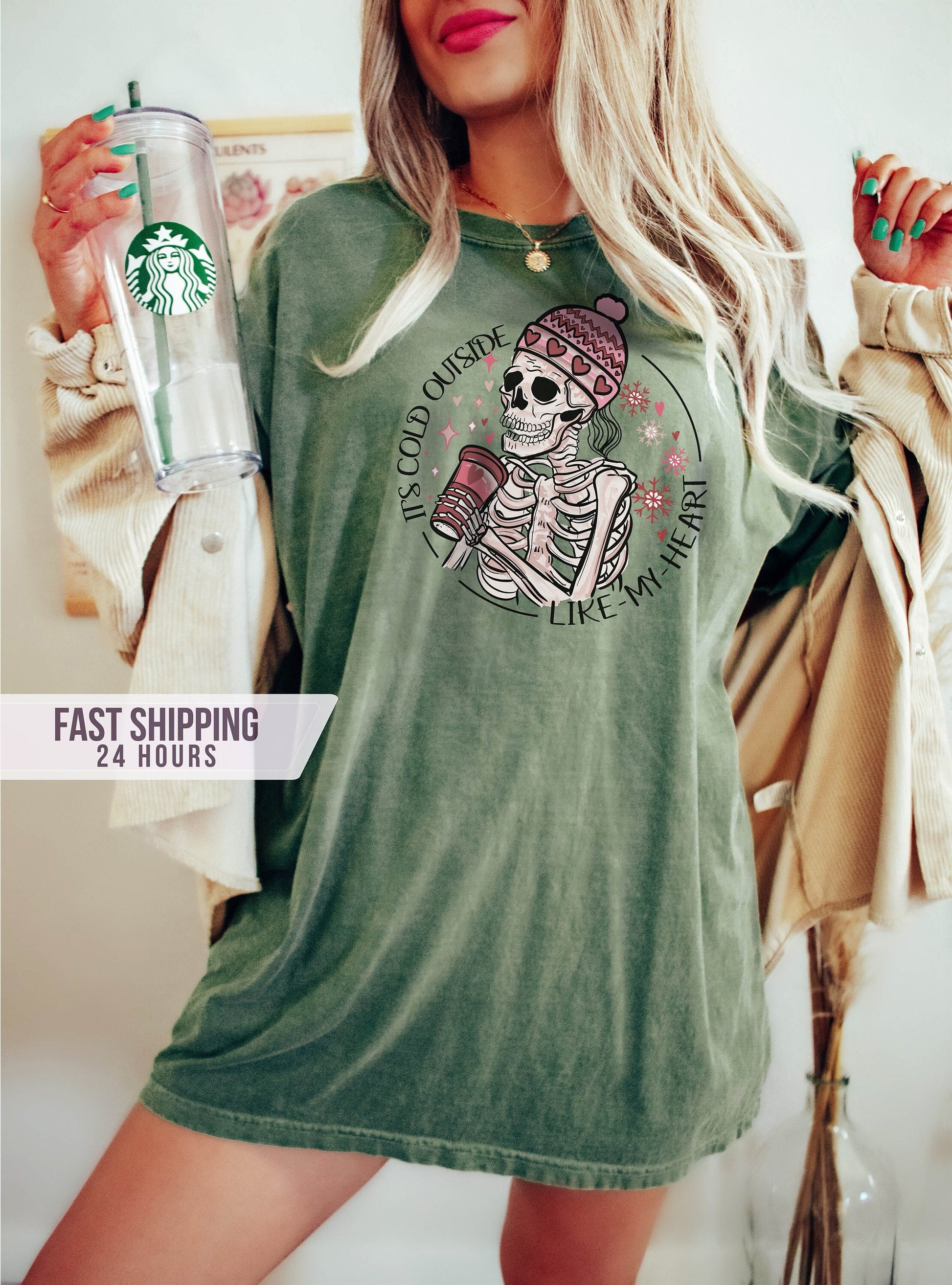 It's Cold Outside Like My Heart Tshirt,Skeleton Shirt,Halloween Shirt, Skull Shirt, Halloween Gifts, Gift for Women,Romantic Halloween Shirt